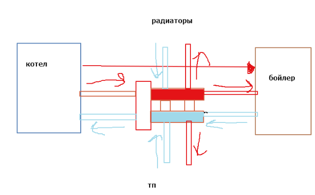 ок. сделаю до стрелки. то что во время нагрева бойлера насосы стрелки тп и радиаторов продолжат работать это норм?