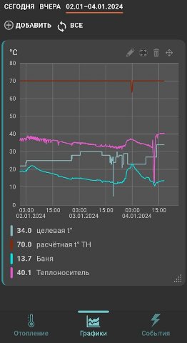 Здравствуйте! У меня на даче Zont в сочетании с котлом Baxi Luna 3D Comfort отапливает по теплотрассе (40 метров длина) баню. Недавно вдарили холода до - 27 градусов и появилась проблема: на первом этаже температура помещения не больше 15 градусов, хотя целевая стоит 23. Температура теплоносителя не поднимается выше 40 градусов (датчик зонт выносной, скорее всего мерит теплоноситель уже в бане), хотя целевая 70. Не могу понять в чем дело. Есть варианты что на самом котле на пульте что то не так нажато и т.д. Не могли бы подсказать как можно исправить?