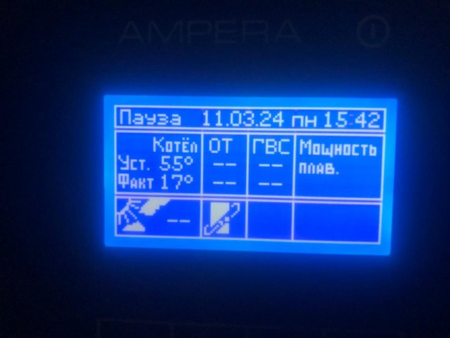 Это про Ampera Plus, Ampera Progry писал(а): 22 янв 2024, 16:06 В тех поддержке прислали инструкцию, что нужно выбрать в меню пункт термостат и зажать кнопку ≡ и произвести настройку