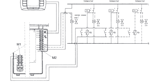 помогите разобраться со схемой подключения доп. зональных термостатов