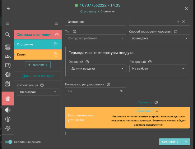 я говорю о том что если настроить (я показал на скриншотах) управление по реле (при такой настойке насос отключается), то система пишет ошибку (на скриншотах видно) и настроить дальше работу, температуру темлоносителя и т.д. нельзя, и ошибку как убрать не понятно.